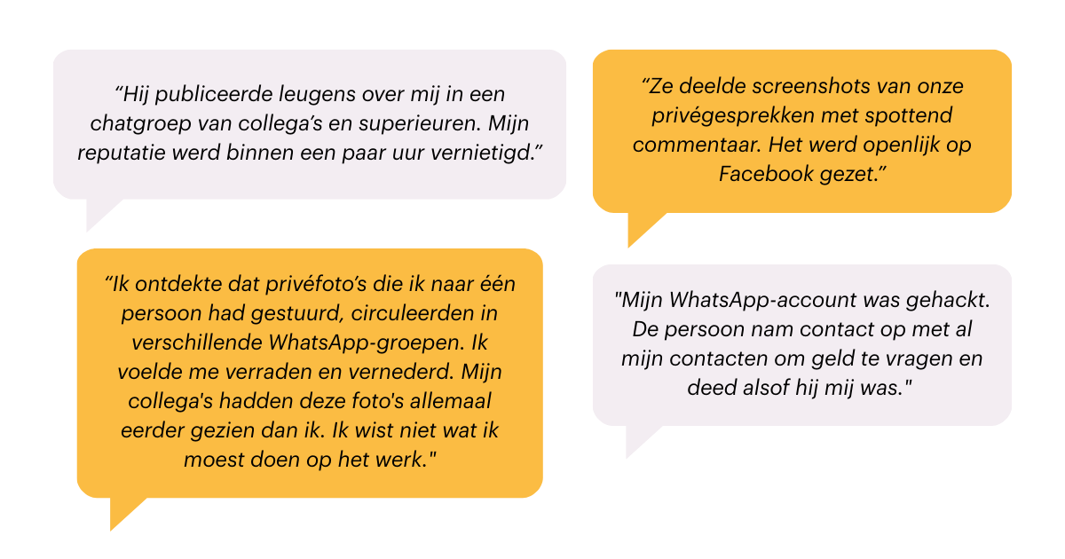 - verspreiding van beelden zonder toestemming,