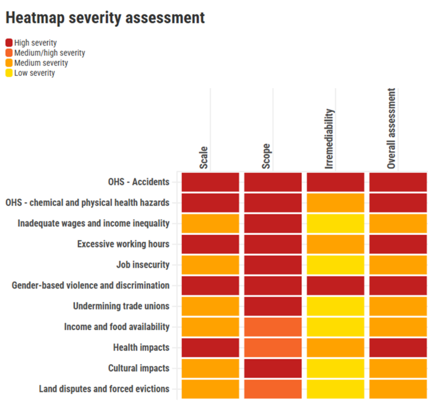 • Labour issues: poor safety standards, low wages, excessive working hours, gender-based violence, and suppression of trade unions
