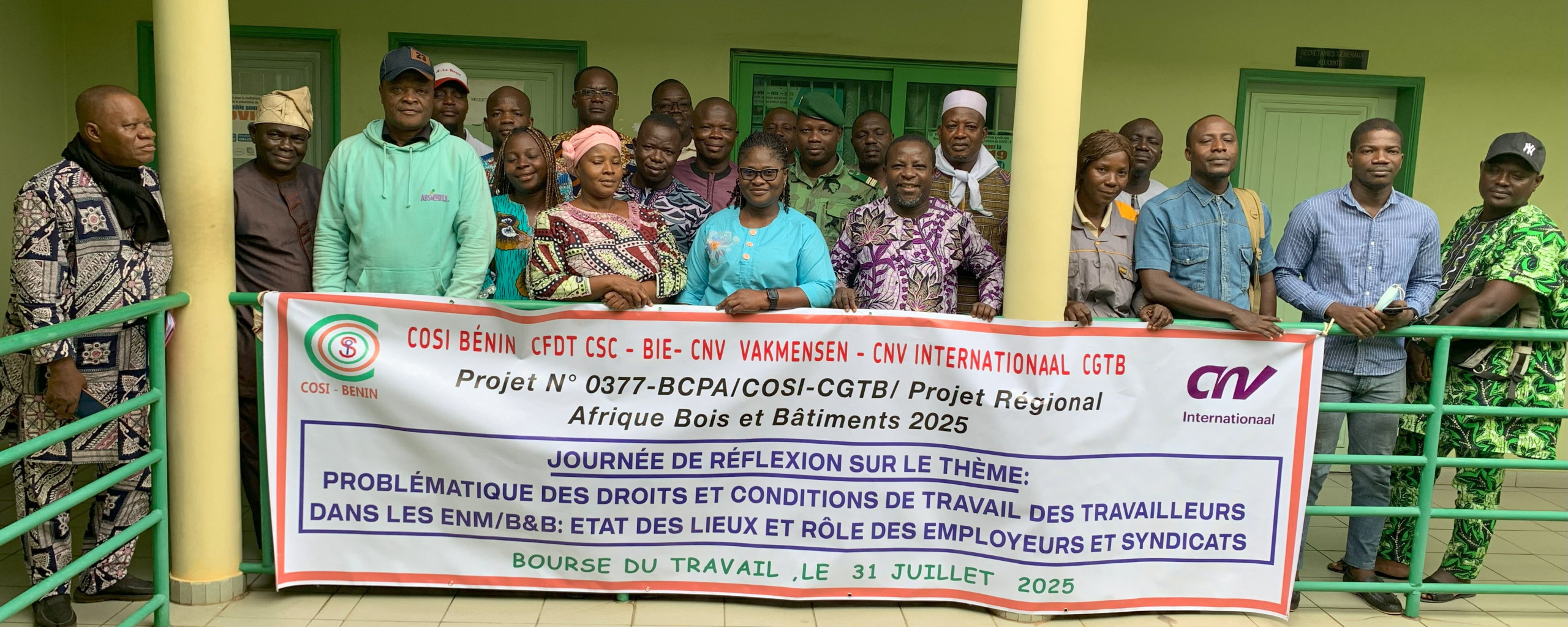 Au Bénin, la COSI-Bénin et la CGTB ont organisé, le 31 juillet 2025, à la Bourse du Travail de Cotonou, une journée de réflexion qui a réuni des délégués syndicaux et des représentants d’entreprises telles que SOGEA Satom, ASP et ATC Beko.